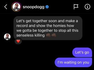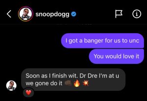 Confirming via Instagram with Snoopy Bad Azz, that a record will be done between the two once Snoop is finished working with Dr. Dre.